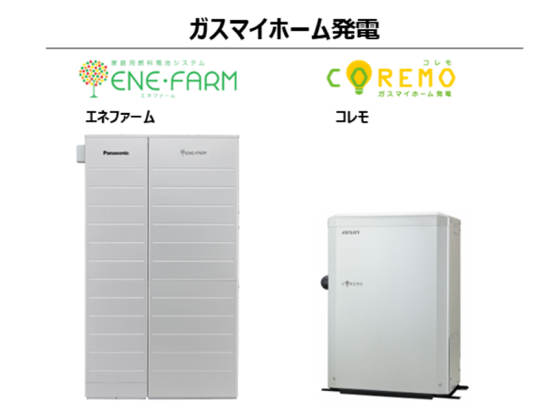 「ガスマイホーム発電(家庭用燃料電池システム・エネファーム または コレモ)は、ガスで自家発電・給湯・暖房の3つの機能を搭載した、「経済性」「環境性」「災害時の備え」が揃ったシステム。